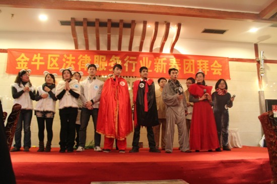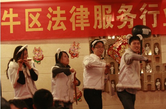 会上,首先由司法局领导发言并向全区法务工作者致以新年的问候。随后,各律师事务所献上了精彩的迎新春表演。我律所员工表演的情景剧《喜洋洋与灰太狼之开心闯龙年》轻松诙谐,情节爆笑,对白幽默,给活动现场带来了浓浓的春节气氛,观看演出的同行们热情高涨,大家共同将团拜会的气氛推到了顶点。
