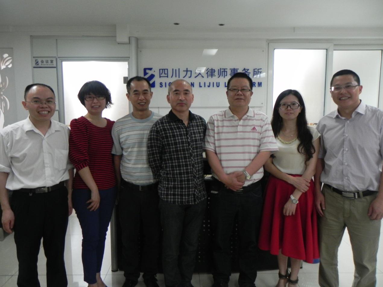 2015年6月4日,德阳科学技术和知识产权局王宏副局长、李真强科长、刘光军科长一行三人莅临四川力久律师事务所参观指导。我所主任王芸律师,中国(成都)知识产权维权援助中心咨询委员会专家、中国(四川)知识产权维权援助中心专利侵权判定咨询专家熊晓果,资深专利代理人刘雪莲等予以热情接待。