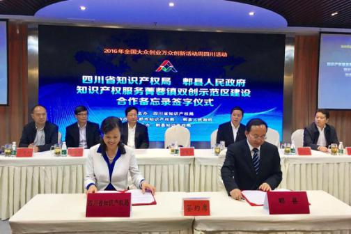 在知识产权服务双创手拉手活动中,四川省知识产权局与郫县人民政府签订了知识产权服务菁蓉镇创新创业合作备忘录。该《备忘录》编制了郫县知识产权特色小镇总体规划,建立职能清晰、人员配置合理、服务功能完善的管理和工作体系。
