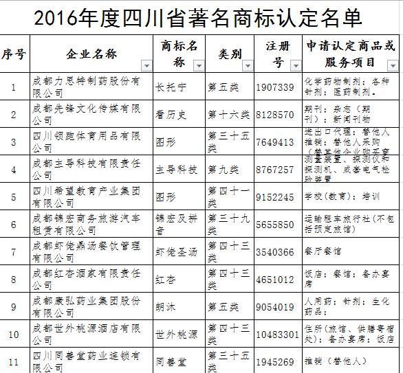 附件:2016年度四川省著名商标认定名单