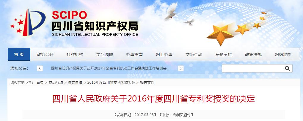 赞!力久律所代理的三项专利荣获2016年度四川省专利奖