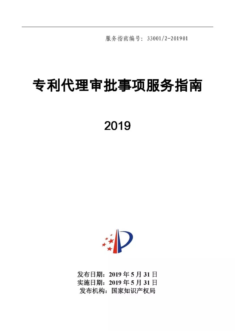 国知局:专利代理审批事项服务指南,2019.5.31实施