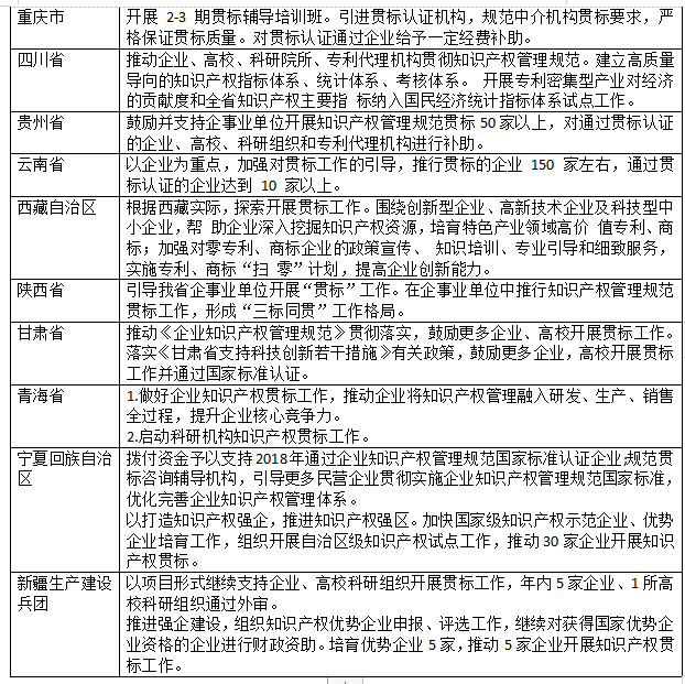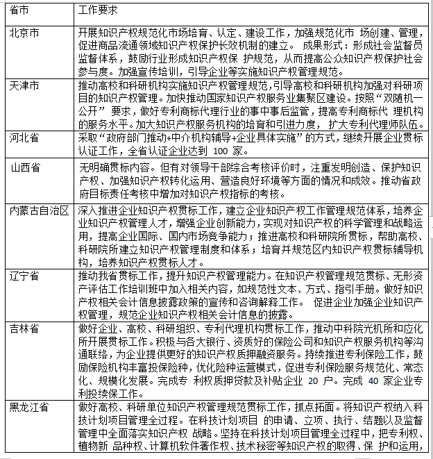 通知!2019年全国各省市开展知识产权贯标工作要求
