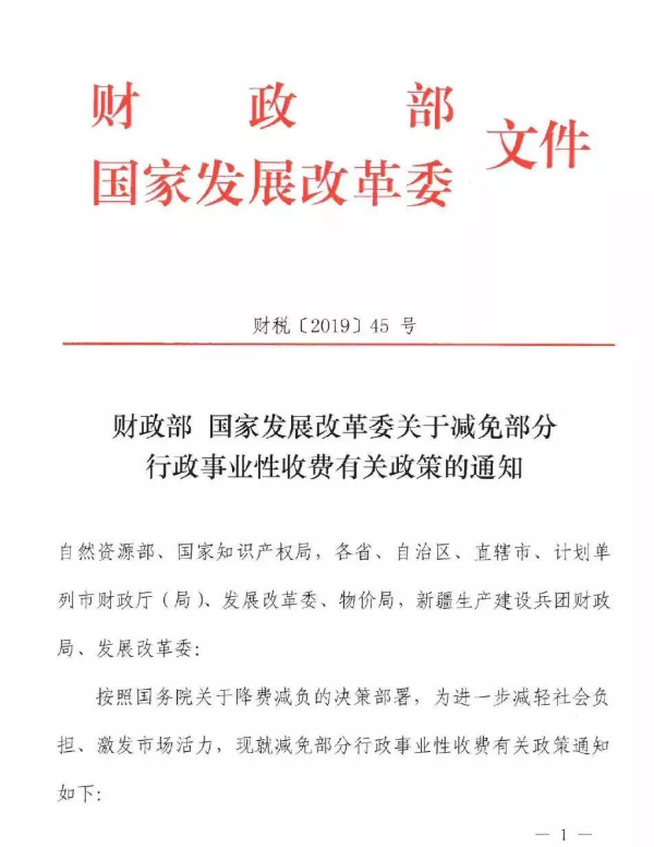 根据近日公布的财税[2019]45号《财政部 国家发展改革委关于减免部分行政事业性收费有关政策的通知》,自2019年7月1日,对专利费用减缓条件进行了调整,调整如下: