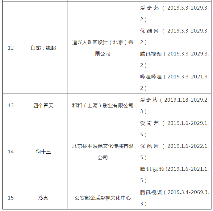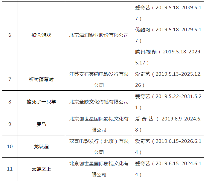 按照国家版权局《关于进一步加强互联网传播作品版权监管工作的意见》及版权重点监管工作计划,根据相关网络服务商上报的作品授权情况,现公布2019年度第五批重点作品版权保护预警名单。