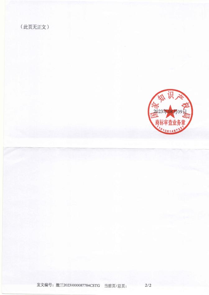 您好!我所于2023年8月25日收到国家知识产权局商标局的发文信件关于第7733889号【第29类 环太实业 HEALTH MORE INDUSTRY】商标的关于提供注册商标使用证据的通知(详情请查看附件)。因未能与贵公司该案件预留的指定联系人取得有效联系,现公示告知!如果在通知书规定的答复期限届满前10个工作日内未收到贵公司的书面指示和电话确认(指示函请发邮件至:shangban@sclijiu.com;电话:18108089793),我们将视为贵公司放弃委托我们办理附件中商标答辩事宜,为此导致商标专用权最终无效由商标专用权人自行负责!