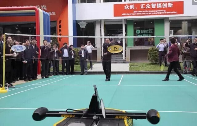 4月25日,李克强总理在成都菁蓉创客小镇与机器人打了一场羽毛球。这款名叫Robomintoner的羽毛球机器人是以骆德渊教授为研发团队带头人的电子科技大学学生创业公司研发制成,曾在2015年斩获“年度robocon亚太大学生机器人大赛国内冠军”。