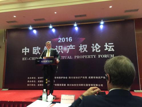 2016年11月9日,成都市知识产权局与欧洲专利局(EPO)共同举办的中欧知识产权论坛在成都举行,四川省知识产权局副巡视员范林海、成都高新区科技局副局长苏昶、欧专局质量管理司司长Wolfram Forster、欧专局质量保证联络司第一总司司长Herbert Bauer以及欧专局欧洲和国际法律事务、PCT司司长 Panagiotis Rigopoulos出席并发表演讲。四川力久律师事务所参加了本次论坛。