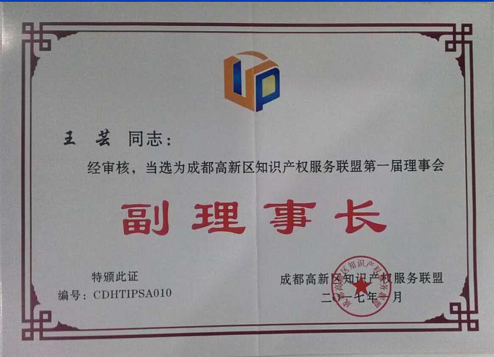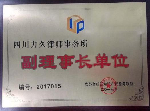 力久律所获评2016成都高新区知识产权服务联盟副理事长单位