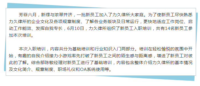 凝心聚力,为梦想并肩而行——力久律所开展新员工入职培训